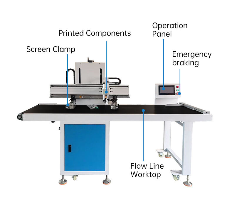 Een volledig geautomatiseerde zeefdruklijn, ontworpen voor efficiënte en nauwkeurige textieldecoratie, ideaal voor middelgrote tot grote productieopdrachten. Het geïntegreerde transportsysteem automatiseert de gehele werkstroom — van het aanvoeren van stof, uitlijnen en bedrukken tot het drogen — waardoor de productiesnelheid aanzienlijk toeneemt en een consistente drukkwaliteit wordt gewaarborgd.